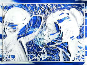 32”x20” Paper lace & graphite drawing, backed with cyanotype print